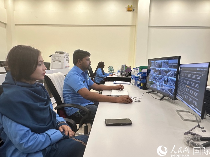 孟加拉国技术人员在达卡机场高架快速路控制中心工作。人民网记者 孙广勇摄