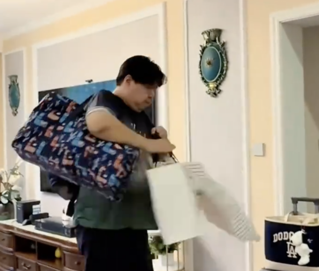 开学季著名景点:“爸拿马运河”。9月开学季,有网友分享自己的开学拿行李教程,首先“捕捉”一个老爸,网友调侃称:“爸拿马运河”。
