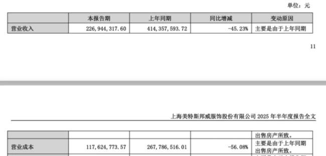 热闹背后,美邦近年发展并不理想。财报数据显示,2024年美邦服饰实现营业收入6.81亿元,同比下降49.79%;净利润-1.95亿元,同比下降715.4%。今年上半年,其营业收入为2.27亿元,同比下降45.23%;净利润为993万元,同比下降87.07%;扣非净利润66.64万元,下降91.79%。
