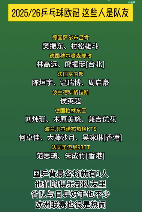 这么多国乒背景球员踏上欧洲赛场,不知道他们在欧冠赛场上会擦出怎样的火花,又能否帮助各自俱乐部斩获佳绩?球迷们已经迫不及待,为他们加油助威了!