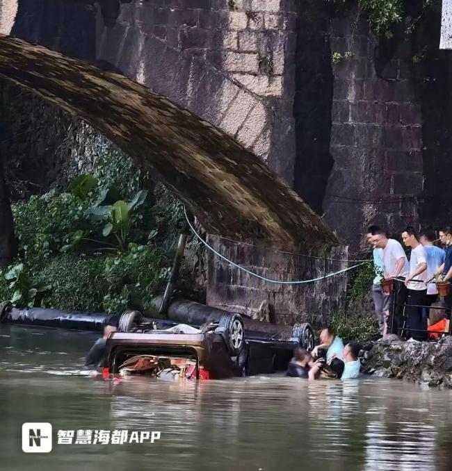 9月20日傍晚,福州闽侯旗山古溪里景区发生了一起意外。一辆小车失控从桥上冲入河中,四轮朝天,车上两人被困在齐胸深的水下。多位正准备晚餐的游客惊愕数秒钟后,跟着景区工作人员跳入河中翻转车辆,共用时5分钟,先后将两位被困人员拉上岸。目前,两伤者正在医院接受治疗。