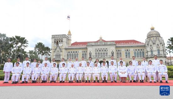 9月24日,泰国总理阿努廷·参威拉军及新一届内阁成员在位于首都曼谷的总理府与媒体见面。新华社发(拉亨摄)