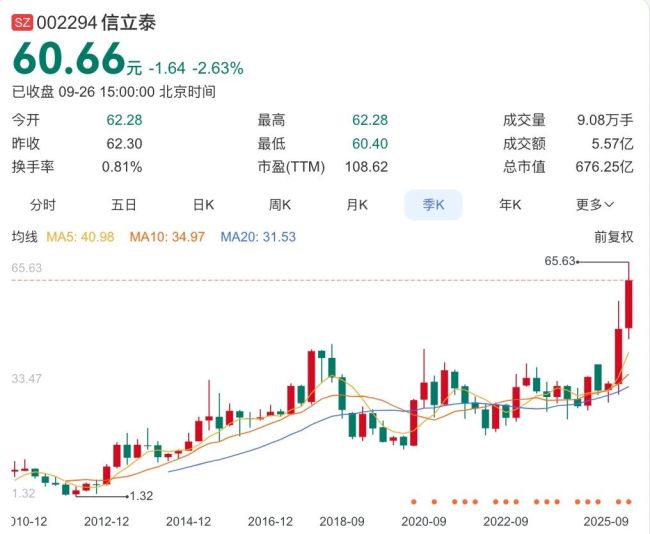 国内市场同样暗潮汹涌。9月23日,老牌心血管药企信立泰举办投资者开放日,披露一系列创新成果。资本市场迅速给出反应:当日股价上涨5.55%,次日直接涨停;截至9月26日收盘,公司股价报60.66元/股,市值676.25亿元,甚至一度突破700亿元大关,较半年前直接翻倍。