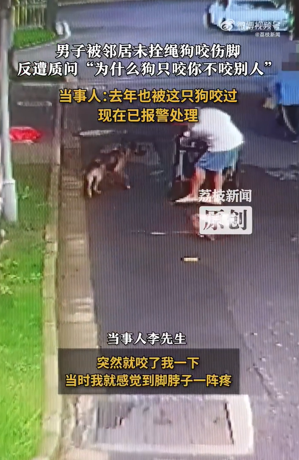 10月16日,安徽马鞍山发生一起令人愤怒的“狗咬人”事件。当地市民李先生在遛狗时,竟被邻居家一条未拴绳的狗扑上来咬伤脚踝。更让人无法接受的是,这并非第一次——**去年他就被同一条狗咬过一次。**如今一年过去,悲剧重演。