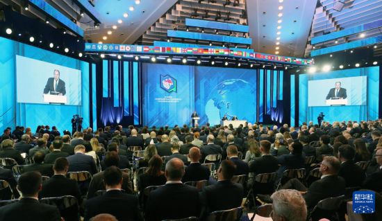 10月28日,在白俄罗斯明斯克,匈牙利外交与对外经济部长西雅尔多在明斯克欧亚安全国际会议开幕式上发表讲话。新华社发(任科夫摄)