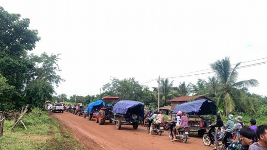 这是7月24日拍摄的柬埔寨奥多棉吉省边境地区正在撤离的民众。新华社发(帕尔林摄)