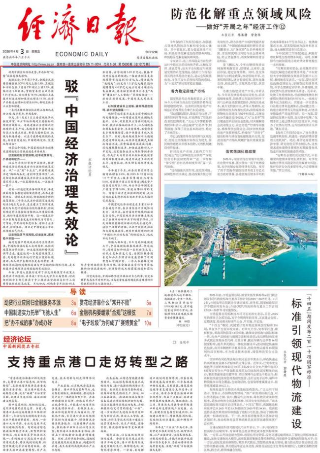 《经济日报》连续三天在头版重要位置刊发评论员文章,驳斥外媒炒作的涉中国经济错误论调。4月1日的文章《驳“中国冲击论”》指出,“中国冲击论”背后是西方的焦虑感,渲染这一论调掩盖不了当前贸易保护主义阻碍世界经济发展的事实。4月2日的文章《驳“中国经济失速论”》强调,行稳致远的战略从容与应对智慧不断刷新中国经济向新向优坐标,让关于中国经济“失速”的声音哑火。