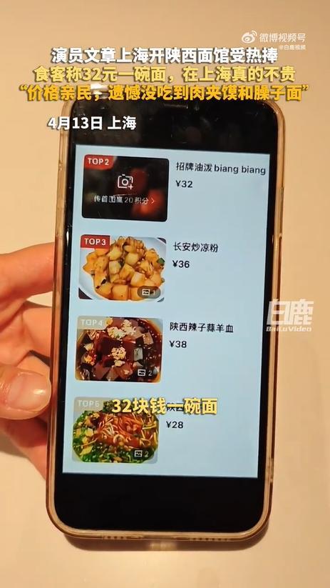 文章回应开面馆 价格亲民获好评。演员文章在上海开了一家名为“八号院儿”的面馆,他热情迎客,全程微笑回应,态度谦和客气。4月13日,“文章上海面馆价格”话题登上微博热搜,网络平台查询显示,这家面馆招牌油泼biang biang面的价格为32元一碗,手打腊汁肉夹馍(肥瘦)的价格为18元。