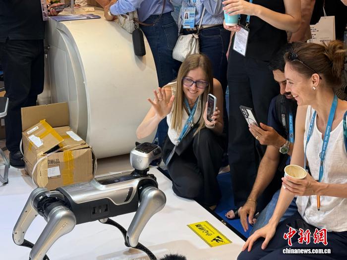 4月15日,广东广州,第139届广交会开幕,机器狗等创新产品吸引海外采购商关注。中新社记者 蔡敏婕 摄
