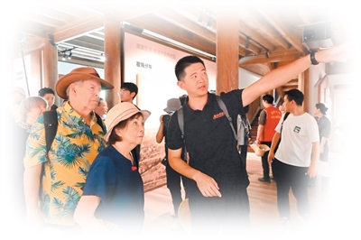 程吕底亚家族后人程高登夫妇(左一、左二)了解鼓岭建筑历史。 新华社记者林善传摄 史迪威将军孙子约翰(左一)与奖学金获奖学生们合影。 资料图片 2024年6月22日,在“鼓岭·家族故事展示馆