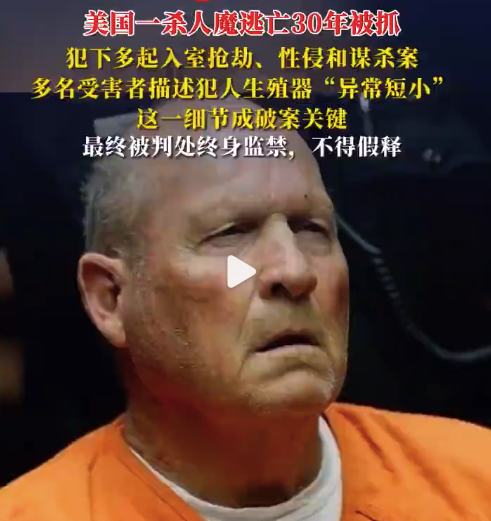 逍遥法外数十年的美国“金州杀手”迪安杰洛已于2020年认罪伏法,其案件最新细节近日被披露:他异常短小的生殖器,曾是警方串联多起案件、确认其身份的关键线索。迪安杰洛在1970至80年代于加州犯下多起入室抢劫、性侵和谋杀案,令社区居民长期生活在...