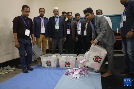 2月12日,在孟加拉国首都达卡,选举工作人员在投票站计票。新华社发(哈比卜·拉赫曼摄)新华社达卡2月13日电(记者陈冬书伍岳)据当地媒体13日报道,初步计票结果显示,在12日举行的孟加拉国国民议会选举