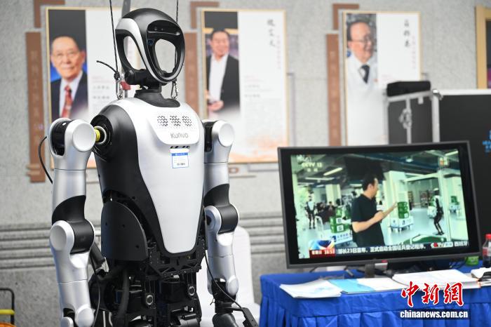 图为展示的人形机器人。中新社记者 戴文昌 摄 图为参会人员体验多导经络动态智能检测仪。中新社记者 戴文昌 摄