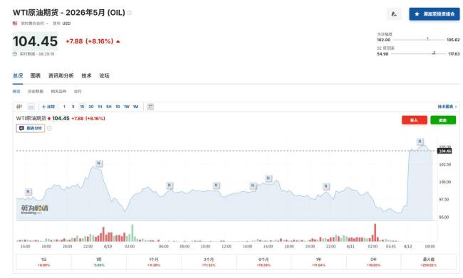美国与伊朗周末和谈未取得成果,导致双方紧张局势升级。周一亚洲开盘时,国际油价大幅上涨,布伦特原油期货和WTI原油期货均上涨约8%