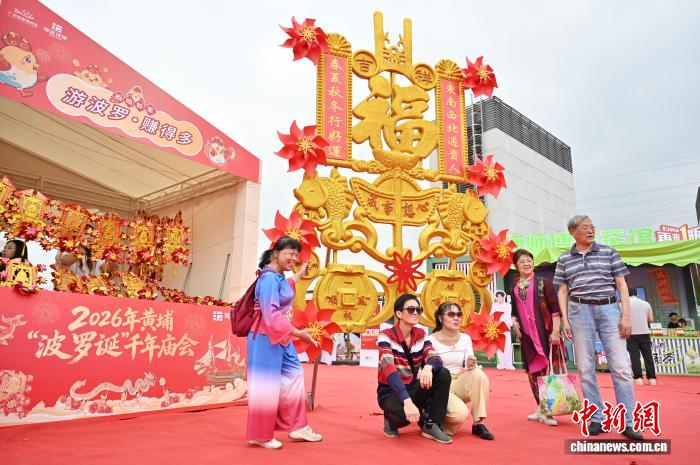 图为庙会的转运风车装置吸引游客合影。中新社记者 陈楚红 摄 图为游客选购波罗鸡。中新社记者 陈楚红 摄