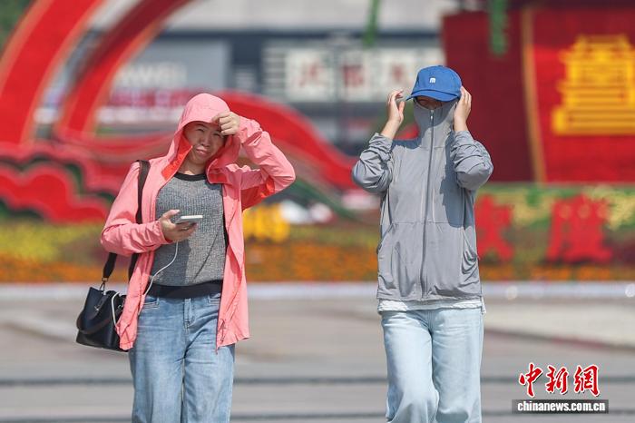 10月11日,江西南昌,民众身穿防晒衣戴帽子出行。中新社记者 刘力鑫 摄 10月11日,江西南昌,民众撑伞、手拿小风扇出行。中新社记者 刘力鑫 摄