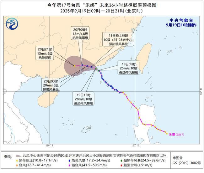 中国天气网讯 中央气象台9月19日10时发布台风黄色预警: 今年第17号台风“米娜”已于今天(9月19日)上午加强为强热带风暴级,上午9点钟其中心位于广东省汕尾市东南方向约65公里的近海海面上,就是北纬22.3度、东经115