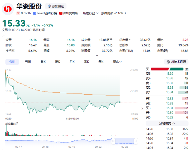 9月23日,装修建材板块午盘下跌,以14740.51点收盘,跌幅为2.58%。