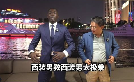 网红“无语哥”夜游黄浦江,自称是成龙的“超级粉丝”,穿着西装示范打太极。...