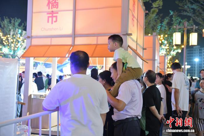 图为现场一名小朋友坐在男子肩上观看比赛。中新社记者 储玮玮 摄 图为一名小朋友现场品尝美食。中新社记者 储玮玮 摄